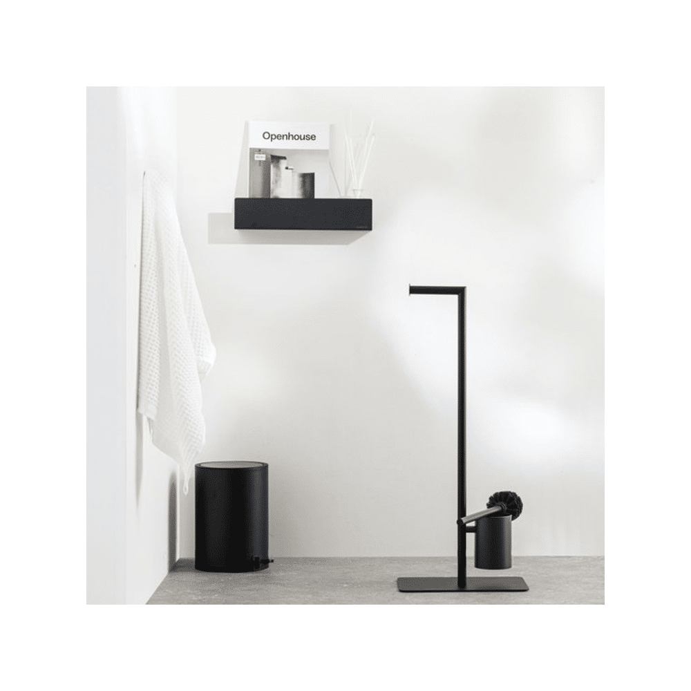 De zwarte Sealskin Brix toiletbutler geeft je wc meteen een moderne upgrade.Hij houdt je wc-rol, borstel en reservepapier netjes samen. Ideaal voor een strakke, georganiseerde look.
