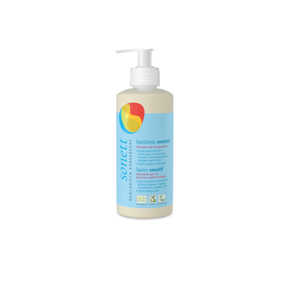 De Sonett Handzeep Sensitief 300ml biedt zachte en milde handreiniging, ideaal voor een gevoelige huid. Een duurzame keuze voor dagelijks gebruik en gezonde handen.