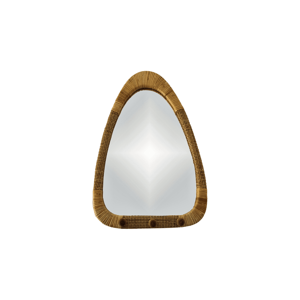 Deze naturel rattan spiegel geeft je interieur een tropische en gezellige uitstraling. De spiegel van 40x6,5x60cm past perfect boven een console of in de slaapkamer en brengt warmte en textuur in elke ruimte.