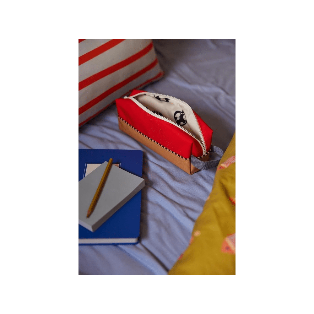 Met deze speelse pennenzak van Sticky Lemon geef je jouw school- of werkdag meteen meer stijl. De Colourblocking combinatie in Red hat en Jane beige zorgt voor een frisse, trendy look. Compact maar ruim genoeg voor al jouw schrijfgerief, en bovendien gemaakt met oog voor het milieu.
