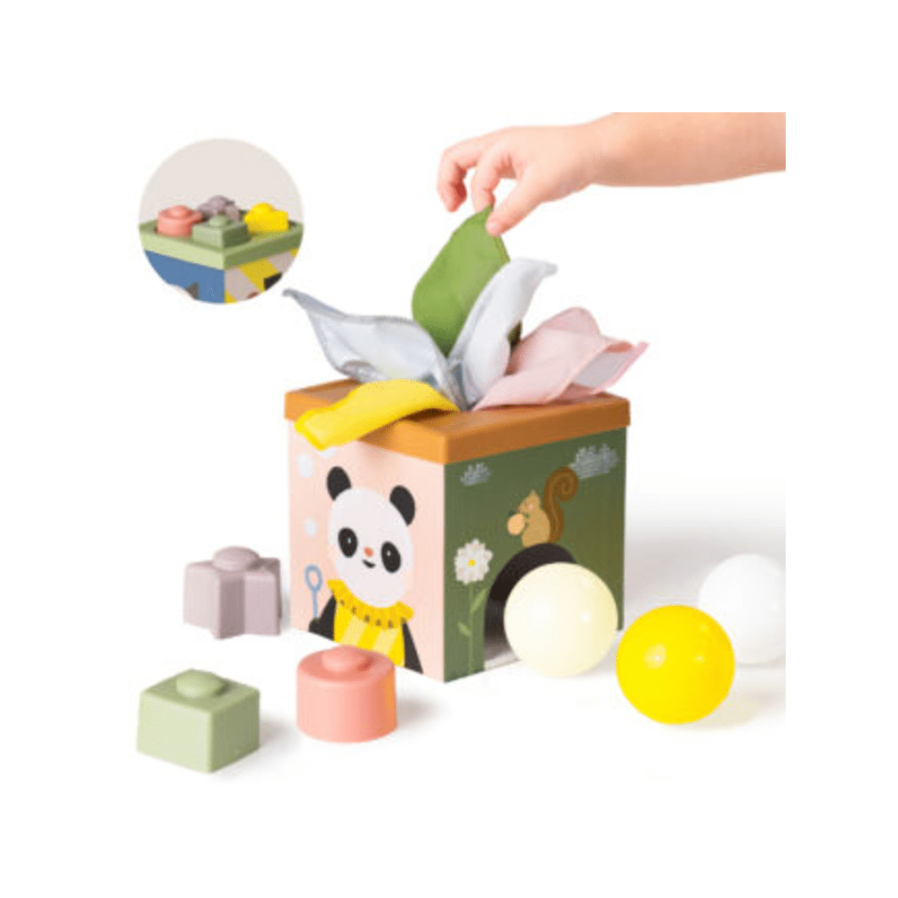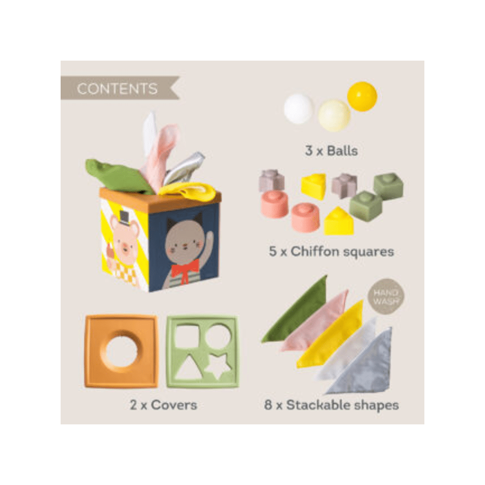 Ontdek een wereld vol plezier en avontuur met de Taf Toys Play & Discover Cube! Deze kleurrijke en interactieve speelkubus prikkelt de nieuwsgierigheid van je kindje en stimuleert spelenderwijs de zintuigen en fijne motoriek. Met verschillende kanten vol verrassende activiteiten zoals draaiende tandwieltjes, ritsjes, spiegelpjes en voelbare texturen, kan je kleintje urenlang ontdekken en experimenteren. De stevige, zachte materialen zijn perfect afgestemd op kleine handjes en veilig om mee te spelen. Ideaal voor zowel thuis als onderweg, houdt deze kubus je kindje geboeid terwijl het leert, ontdekt en speelt. Het compacte formaat maakt het makkelijk om mee te nemen, zodat plezier en ontwikkeling altijd binnen handbereik zijn!
