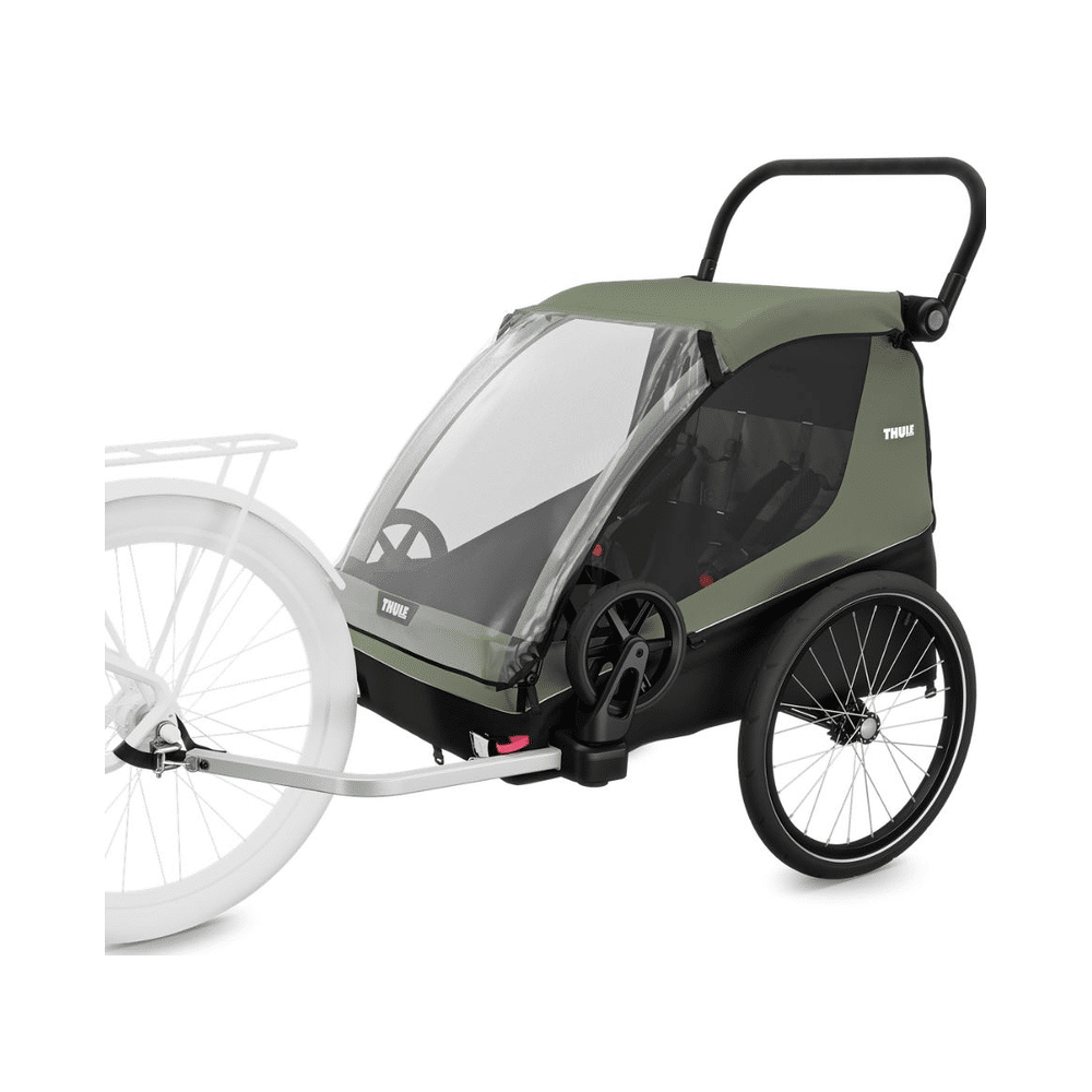 De Thule Courier Fietskar in Vintage Green biedt de perfecte oplossing voor actieve ouders die hun kinderen veilig en comfortabel willen vervoeren tijdens fietstochten. Deze veelzijdige fietskar is ontworpen voor gezinnen die van avontuur houden en zorgt ervoor dat je kleintje kan genieten van de rit, waar je ook heen gaat.