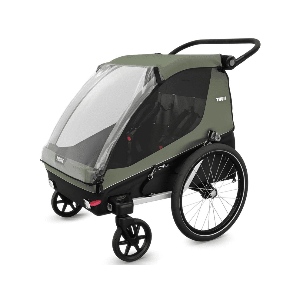 De Thule Courier is uitgerust met een betrouwbare 5-punts veiligheidsgordel voor optimale veiligheid tijdens de rit. De fietskar heeft een eenvoudig en snel bevestigingssysteem, wat zorgt voor een stabiele en veilige rit. Het innovatieve ontwerp maakt het ook mogelijk om de fietskar om te bouwen naar een wandelwagen (met de bijbehorende accessoires, apart verkrijgbaar).