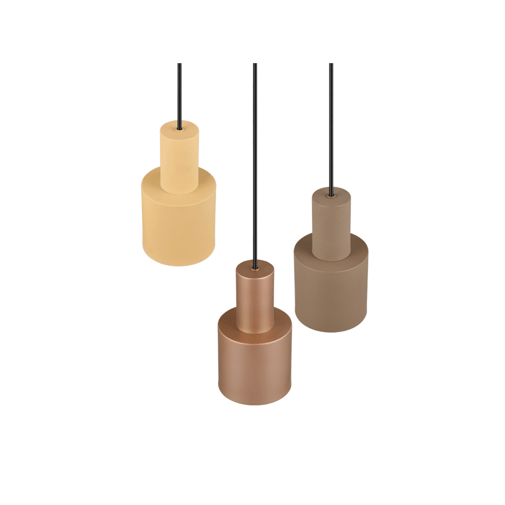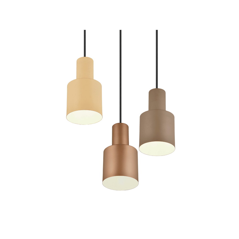 De lamp heeft een unieke uitstraling dankzij de gedempte kleuren en de matte metalen afwerking van de lampenkappen. Dit ontwerp maakt de AGUDO hanglamp tot een stijlvol en opvallend element in je woonkamer of eetkamer. Het biedt een warme lichtbeleving en verbetert de algehele sfeer van je ruimte.