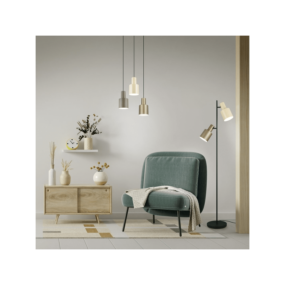 De Trio AGUDO hanglamp voegt een verfijnde en gezellige uitstraling toe aan je interieur. Met drie lampen creëert deze hanglamp een warme sfeer boven een eet- of woonkamertafel. Het elegante ontwerp en de combinatie van gedempte natuurlijke kleuren met mat zwart zorgen voor een perfecte balans tussen modern minimalisme en gezelligheid.