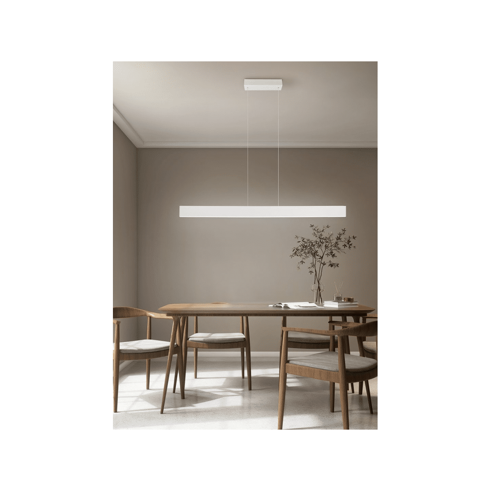 De GALWAY hanglamp heeft een elegante matte witte afwerking, die naadloos past in verschillende kleurenschema's en een moderne uitstraling biedt. Het strakke design maakt de lamp een stijlvolle toevoeging aan zowel klassieke als hedendaagse interieurstijlen.