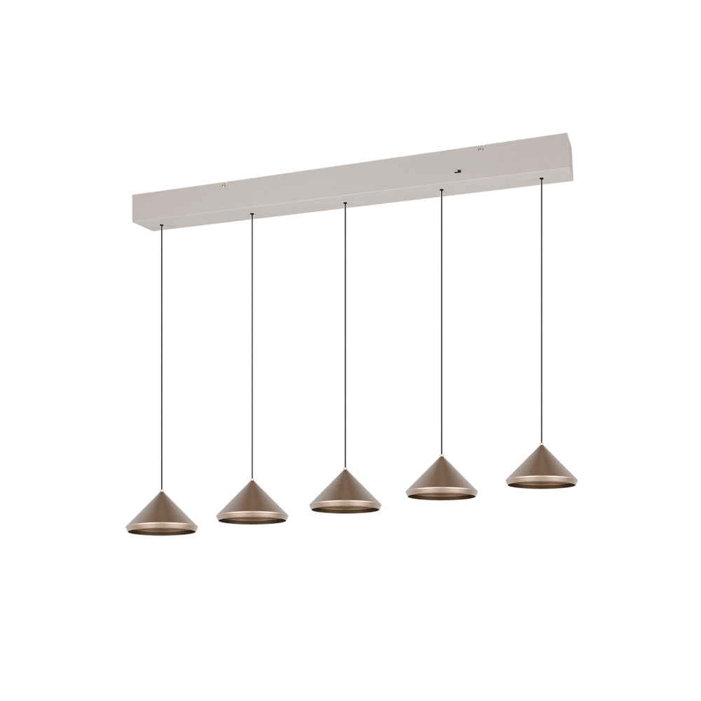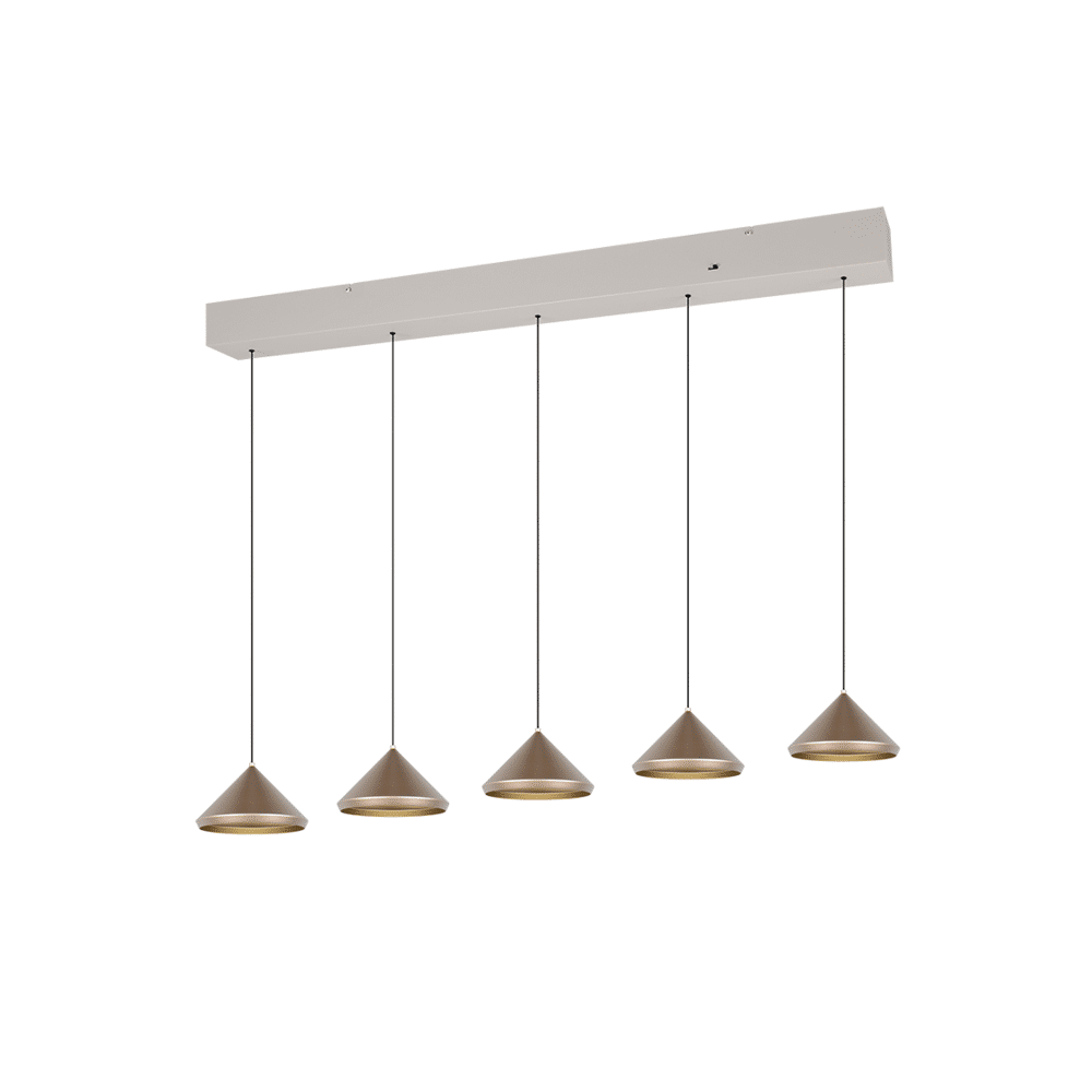 De Trio LAGUNA hanglamp biedt een moderne oplossing voor elke ruimte, met een stijlvol ontwerp en flexibele lichtinstellingen. De lamp is voorzien van 5x SMD LED's, die samen een totaal van 2500lm leveren. Met de directe instelmogelijkheid van de lichtkleur via de DIP SWITCH kun je eenvoudig schakelen tussen drie lichtkleuren: warm wit (2300K), neutraal wit (3000K) en daglichtwit (4000K). Hierdoor is de LAGUNA perfect voor het creëren van de gewenste sfeer in elke omgeving.