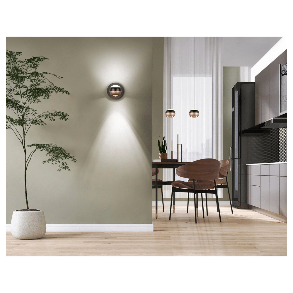 De Trio ORBIT hanglamp met één vlam is een perfecte combinatie van stijl en functionaliteit. Met haar elegante ontwerp en up- en downverlichting zorgt de lamp voor een warme, uitnodigende sfeer boven de eettafel. Het bolvormige ontwerp in mat zwart en koffie maakt de lamp een moderne blikvanger in elke ruimte.