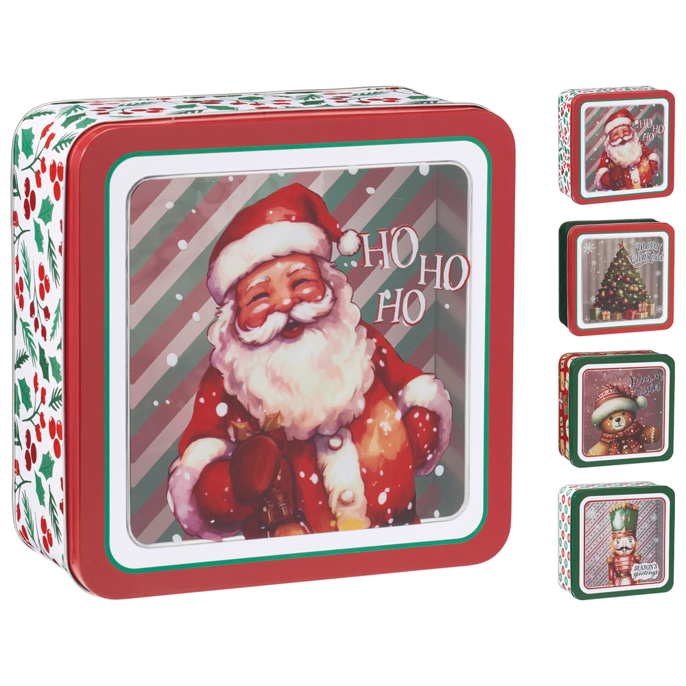 Breng instant kerstsfeer in huis met dit charmante metalen opbergblik van 19x19x8,5 cm. Ideaal voor koekjes, snoep of kleine cadeautjes. Verkrijgbaar in 4 vrolijke kerstmotieven – elke box wordt apart verkocht.Perfect voor inpakfans en kerstliefhebbers