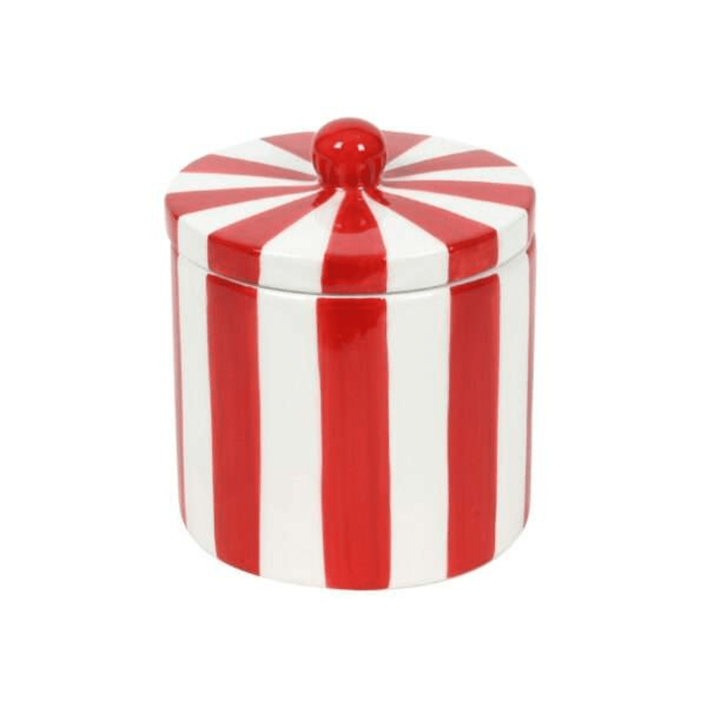 Voorraadpot Dolo Rond Rood Wit Streep 9*9*10,5cm