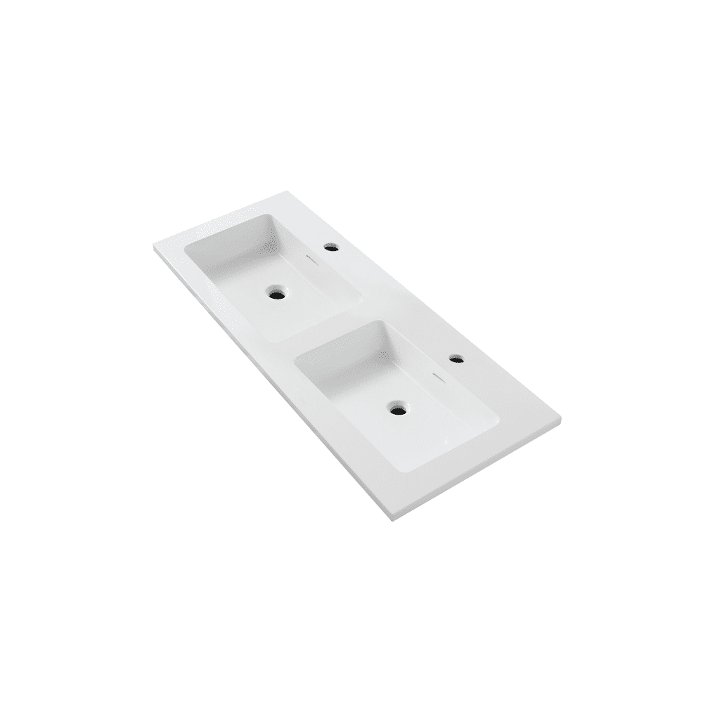 - Product: Wonda Square Slim Wastafel - 2 Wasbakken - Kunstmarmer - 120x1.6x52.5 Cm - Mat Wit