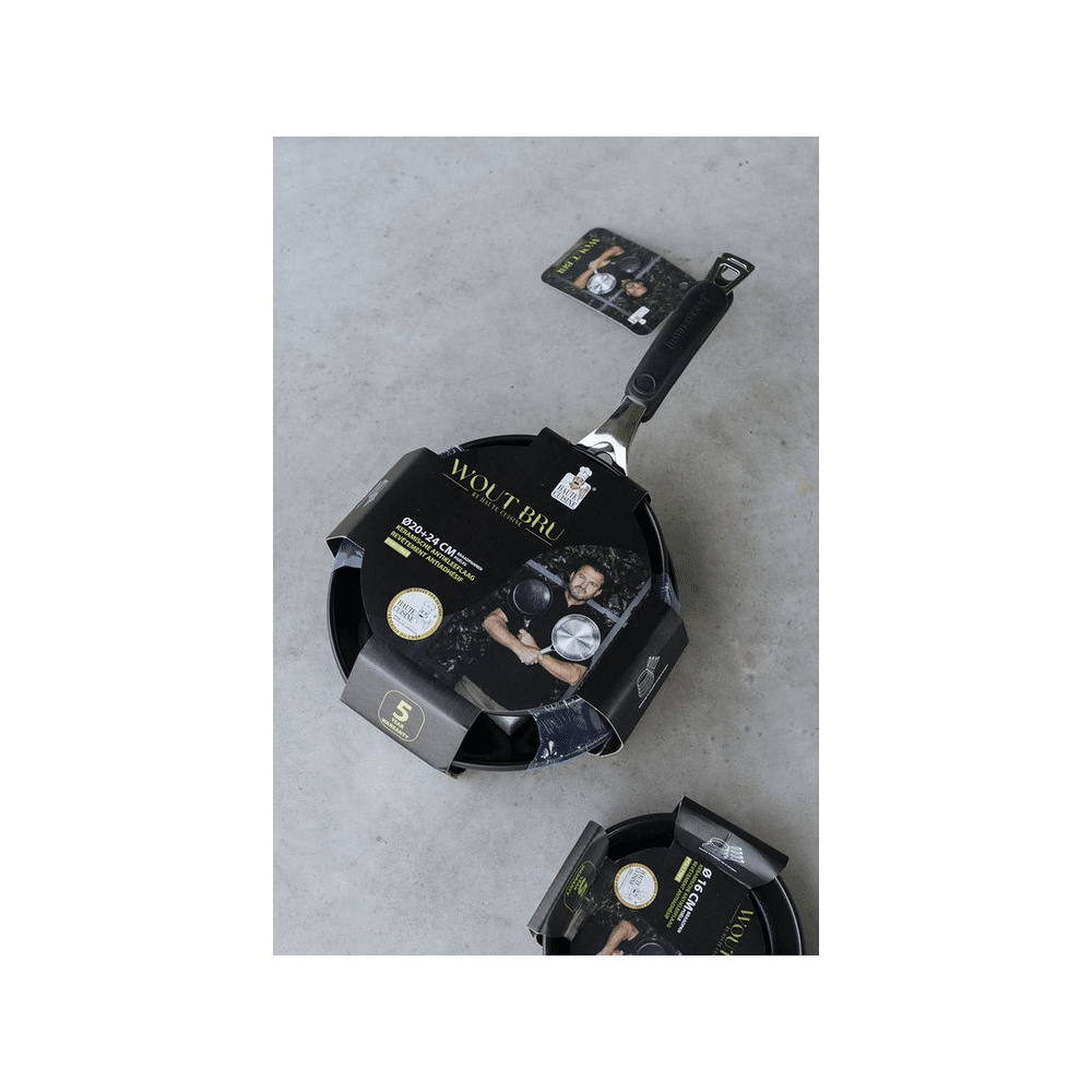 Met deze pannenset van Wout Bru by Haute Cuisine haal je kwaliteit en comfort in huis. De combinatie van gerecycled aluminium en een sterke keramische antikleeflaag zorgt voor moeiteloos bakken en een lange levensduur. Ideaal voor wie energiezuinig en gezond wil koken.