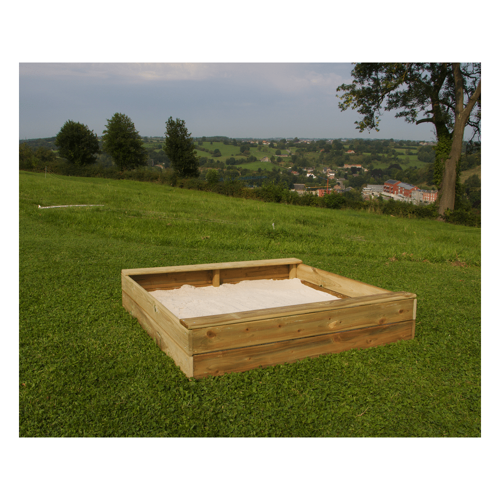 Deze houten zandbak van 100 cm is ideaal voor jonge kinderen die graag graven en bouwen. Het compacte formaat past goed in kleinere tuinen en biedt toch voldoende ruimte om samen te spelen. Een klassiek buitenspeel-item dat creativiteit stimuleert.